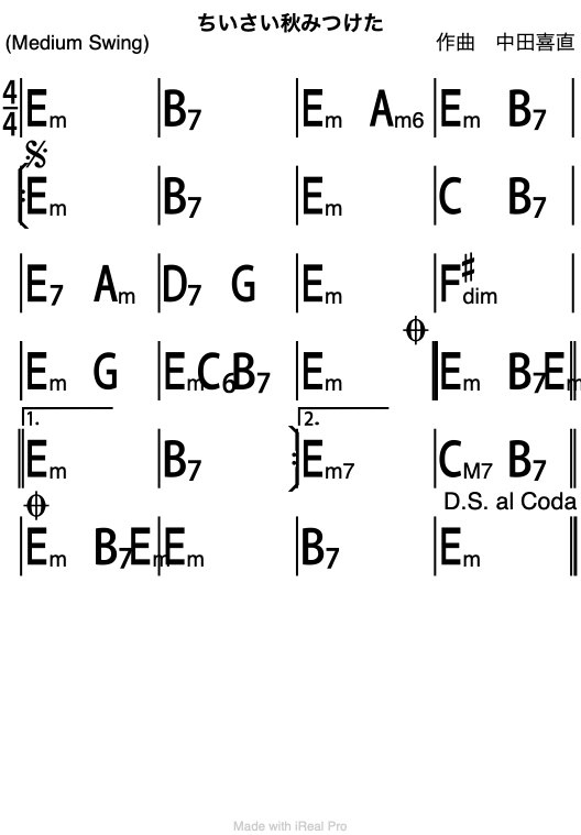 iReal で作成した楽譜。こっちのスキルもあげないとなぁ…。